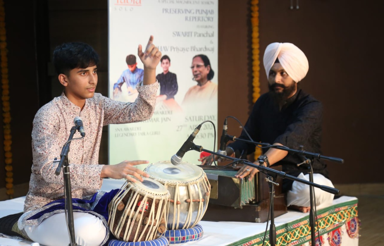 ਚੰਡੀਗੜ੍ਹ, 28 ਅਪ੍ਰੈਲ, ਪੰਜਾਬੀ ਦੁਨੀਆ ਬਿਊਰੋ: ਬੀਤੀ ਸ਼ਾਮ ਪ੍ਰਾਚੀਨ ਕਲਾ ਕੇਂਦਰ ਦੇ ਐੱਮ.ਐੱਲ.ਕੌਸਰ ਆਡੀਟੋਰੀਅਮ ਵਿਖੇ ਪੰਜਾਬ ਘਰਾਣੇ ਦੇ ਦੋ ਨੌਜਵਾਨ ਕਲਾਕਾਰਾਂ ਵੱਲੋਂ ਸੋਲੋ ਤਬਲਾ ਵਾਦਨ ਦੀ ਪੇਸ਼ਕਾਰੀ ਕੀਤੀ ਗਈ। ਪੰਡਿਤ ਸੁਸ਼ੀਲ ਜੈਨ ਦੀ ਅਗਵਾਈ ਹੇਠ ਪੰਜਾਬ ਘਰਾਣੇ ਦੇ ਤਬਲਾ ਗੁਰੂ ਤੋਂ ਤਬਲਾ ਵਾਦਨ ਦੀ ਸਿਖਲਾਈ ਲੈ ਰਹੇ ਸਵਰਿਤ ਪੰਚਾਲ (ਪੁਣੇ) ਅਤੇ ਰਾਘਵ ਪ੍ਰਿਆ ਭਾਰਦਵਾਜ (ਅੰਮ੍ਰਿਤਸਰ)…