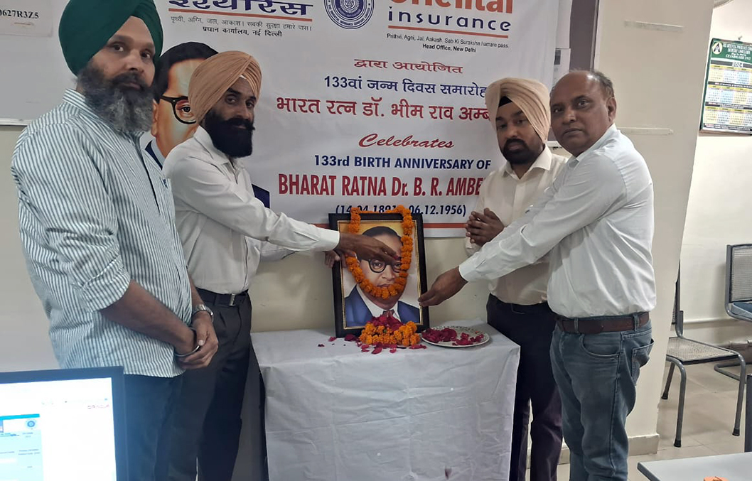 ਚੰਡੀਗੜ੍ਹ, 15 ਅਪ੍ਰੈਲ, ਪੰਜਾਬੀ ਦੁਨੀਆ ਬਿਊਰੋ: ਭਾਰਤੀ ਸੰਵਿਧਾਨ ਦੇ ਨਿਰਮਾਤਾ ਡਾ. ਭੀਮ ਰਾਓ ਅੰਬੇਦਕਰ ਦਾ 133ਵਾਂ ਜਨਮ ਦਿਵਸ ਓਰੀਐਂਟਲ ਇੰਸ਼ੋਰੈਂਸ ਕੰਪਨੀ ਦੀ ਬ੍ਰਾਂਚ ਸੀਬੀਓ-3, ਸੈਕਟਰ-30, ਚੰਡੀਗੜ੍ਹ ਵੱਲੋਂ ਸ਼ਰਧਾ ਨਾਲ ਮਨਾਇਆ ਗਿਆ। ਇਸ ਮੌਕੇ ਬ੍ਰਾਂਚ ਮੈਨੇਜਰ ਸ. ਜਗਜੀਤ ਸਿੰਘ ਦੀ ਅਗਵਾਈ ਵਿੱਚ ਸਟਾਫ ਅਤੇ ਸਮੂਹ ਇੰਸ਼ੋਰੈਂਸ ਐਡਵਾਈਜ਼ਰਾਂ ਵਲੋਂ ਦਫਤਰ ਵਿੱਚ ਡਾ. ਭੀਮ ਰਾਓ ਅੰਬੇਦਕਰ ਜੀ ਦੀ ਫੋਟੋ ਉਤੇ…