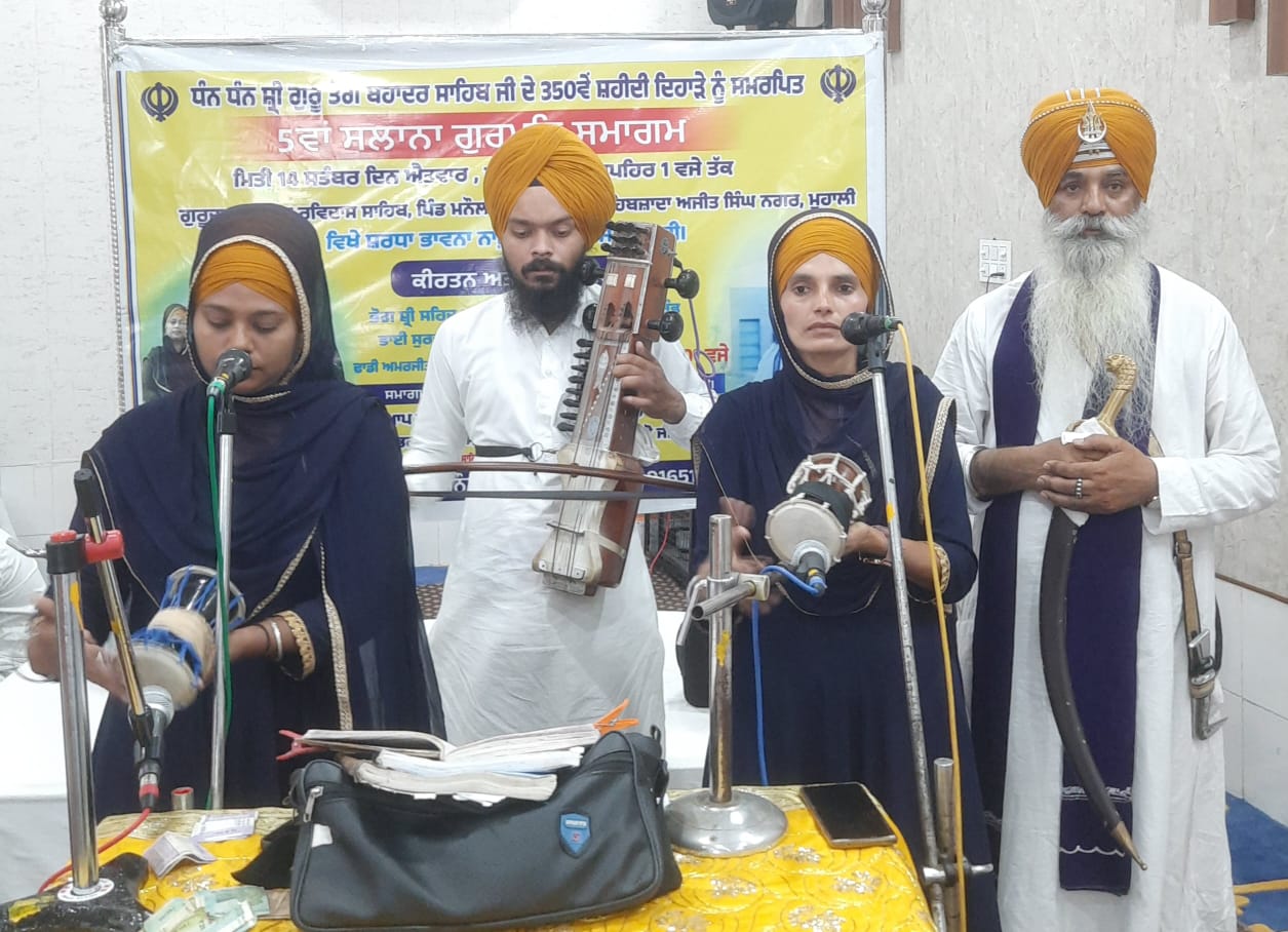 ਐਸ.ਏ.ਐਸ. ਨਗਰ, 15 ਸਤੰਬਰ, ਅਮਨਦੀਪ ਸਿੰਘ : ਧੰਨ ਸ਼੍ਰੀ ਗੁਰੂ ਤੇਗ ਬਹਾਦਰ ਸਾਹਿਬ ਜੀ ਦੀ 350 ਸਾਲਾਂ ਸ਼ਹੀਦੀ ਸ਼ਤਾਬਦੀ ਨੂੰ ਸਮਰਪਿਤ ਗੁਰਮਤਿ ਸਮਾਗਮ ਪਿੰਡ ਮਨੌਲੀ ਵਿਖੇ ਸਮੂਹ ਸਾਧ ਸੰਗਤ ਦੇ ਸਹਿਯੋਗ ਨਾਲ ਕਰਵਾਇਆ ਗਿਆ। ਸਮਾਗਮ ਦੀ ਜਾਣਕਾਰੀ ਦਿੰਦੇ ਹੋਏ, ਕਰਨਲ ਜਸਦੀਪ ਸਿੰਘ ਸੰਧੂ, ਅਡਵਾਈਜ਼ਰ ਵੈਸਟਨ ਕਮਾਂਡ, ਪੰਜਾਬੀ ਗਾਇਕ ਤੇ ਲੇਖਕ ਹਰਿੰਦਰ ਹਰ, ਸ਼ਰਨਜੀਤ ਸਿੰਘ ਬਾਗੀ…