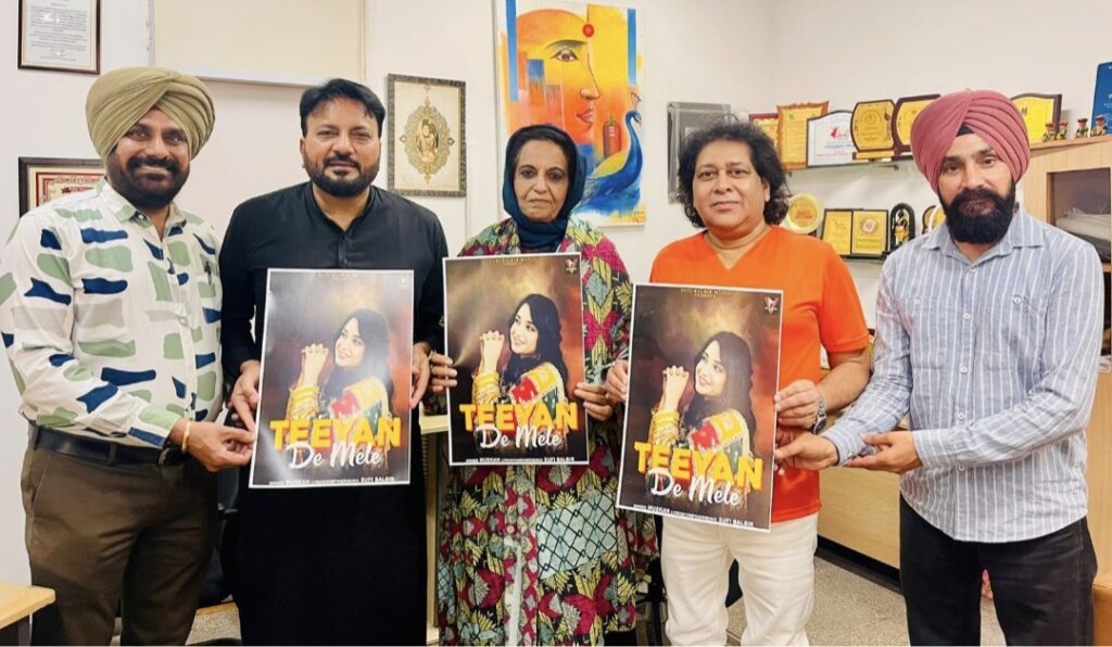 ਉੱਭਰਦੀ ਗਾਇਕਾ ਮੁਸਕਾਨ ਦੇ ਪਲੇਠੇ ਗੀਤ “ਤੀਆਂ ਦੇ ਮੇਲੇ” ਦਾ ਪੋਸਟਰ ਪ੍ਰਸਿੱਧ ਗਾਇਕਾ ਤੇ ਚੰਡੀਗੜ੍ਹ ਸੰਗੀਤ ਨਾਟਕ ਅਕੈਡਮੀ ਦੀ ਚੈਅਰਪਰਸਨ ਸੁੱਖੀ ਬਰਾੜ, ਇਸ ਗੀਤ ਦੇ ਰਚੇਤਾ ਤੇ ਸੰਗੀਤਕਾਰ ਪ੍ਰਸਿੱਧ ਗਾਇਕ ਸੂਫ਼ੀ ਬਲਬੀਰ , ਗੀਤਕਾਰ ਰਣਬੀਰ ਦੁਰਾਲੀ, ਪ੍ਰਸਿੱਧ ਸੰਗੀਤਕਾਰ ਤੇ ਗਾਇਕ ਮਦਨ ਸ਼ੌਂਕੀ ਤੇ ਇੰਸਪੈਕਟਰ ਸਤਿੰਦਰਪਾਲ ਸਿੰਘ ਵੱਲੋਂ ਰਿਲੀਜ਼ ਕੀਤਾ ਗਿਆ।