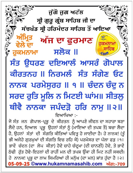 Amrit Wele da Hukamnama Sachkhand Sri Darbar Sahib, Amritsar, Ang 709, 05-09-2025