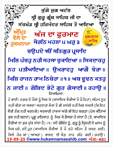 Amrit Wele Da Mukhwak Sachkhand Sri Harmandir Sahib Amritsar Ang 621 Date: 15-09-25