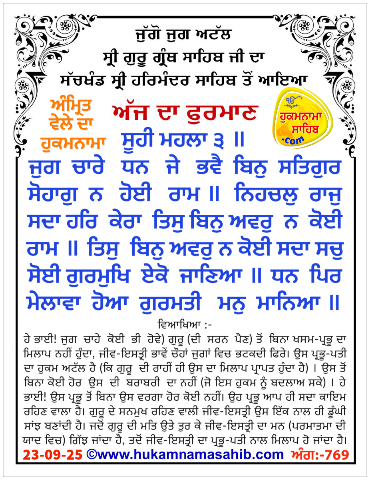 Amrit wele da mukhwakh shri Harmandar sahib amritsar, Ang-769-770, 23-09-2025