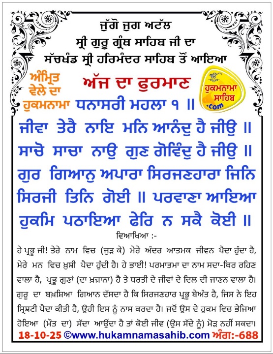Amrit Wele Da Mukhwak Sachkhand Sri Harmandir Sahib Amritsar18-10-2025 Ang 688