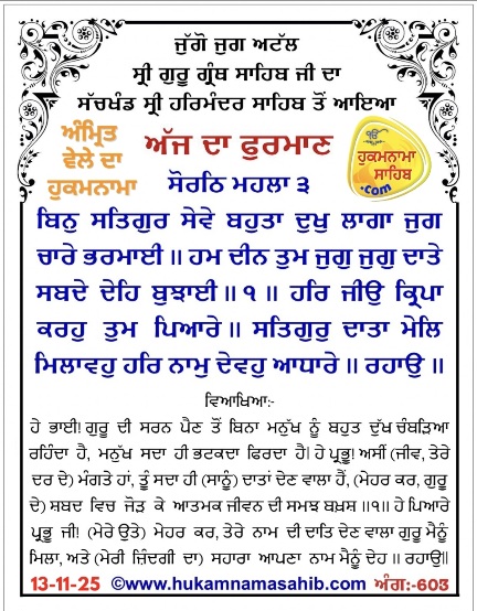 Amrit Vele Da Mukhwak Sachkhand Siri Darbar Sahib, Amritsar, Ang 603 3-11-2025