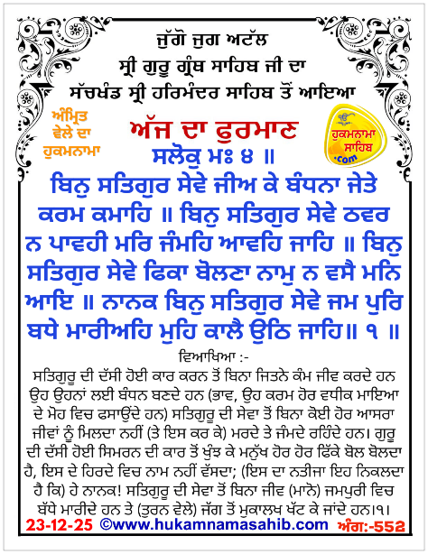 Amrit Vele da Hukamnama Sri Darbar Sahib, Amritsar, ANG 552, 23-12-2025