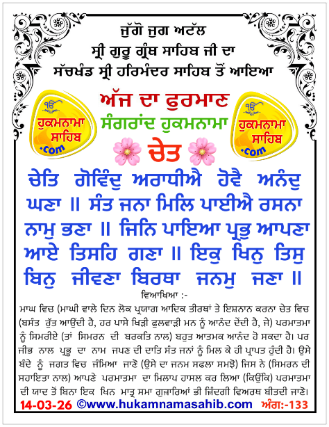 Hukamnama Sri Darbar Sahib, Amritsar – Punjabi Dunia