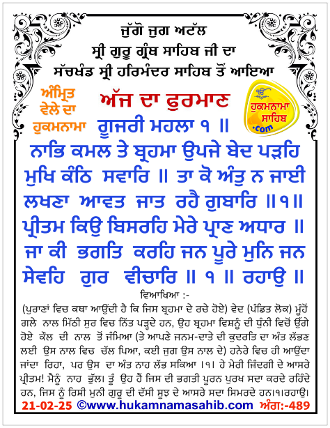 Amrit Vele da Hukamnama Sri Darbar Sahib, Amritsar, Ang 489, 21-02-2025