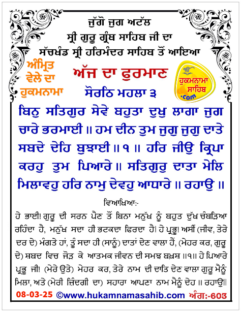 Amrit Vele Da Mukhwak Sachkhand Siri Darbar Sahib, Amritsar, Ang 603 08-03-2025