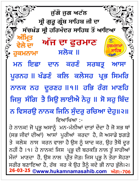 Sachkhand Sri Harmandir Sahib Amritsar Vekhe Hoea Amrit Wele Da Mukhwak