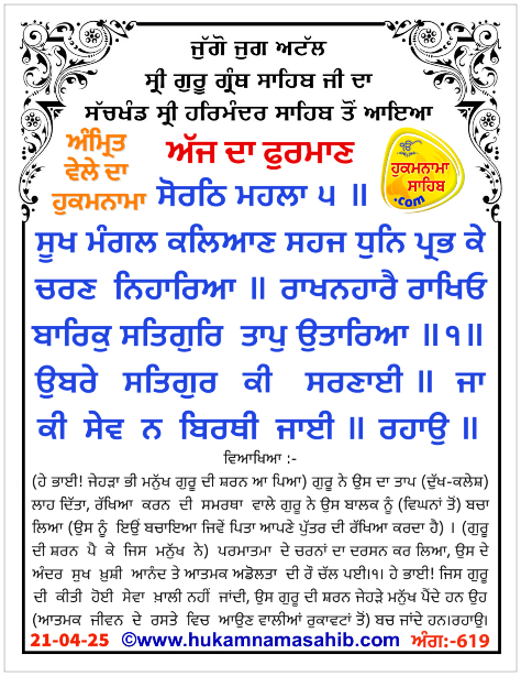 Amrit Vele da Hukamnama Sri Darbar Sahib, Amritsar Sahib, Ang 619, 21-04-25