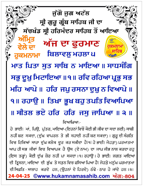 AMRIT VELE DA HUKAMNAMA SRI DARBAR SAHIB, SRI AMRITSAR, ANG 804, 24-04-2025