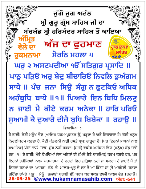 AMRIT VELE DA HUKAMNAMA SRI DARBAR SAHIB AMRITSAR, ANG 641, 28-04-2025