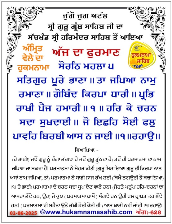 Amrit Wele Da Mukhwak Sachkhand Sri Darbar Sahib Amritsar, Ang 628, Date 02-05-25