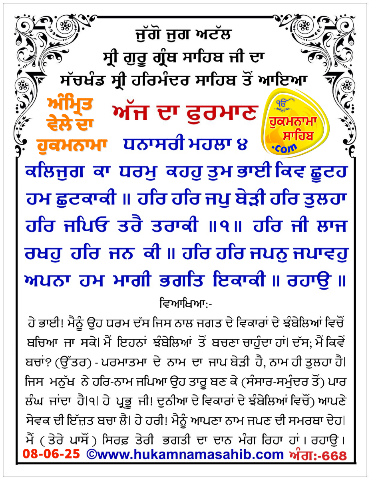 AMRIT VELE DA HUKAMNAMA SRI DARBAR SAHIB, AMRITSAR ANG 668, 08-06-2025