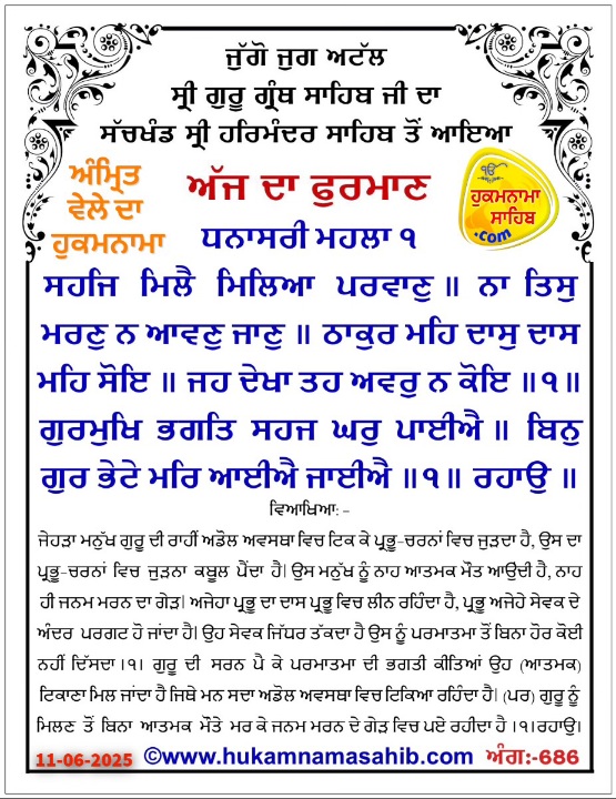 AMRIT VELE DA HUKAMNAMA SRI DARBAR SAHIB AMRITSAR, ANG 686, 11-06-2025