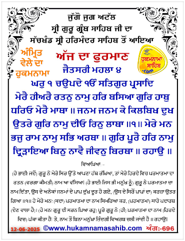 Amrit Wele Da Mukhwak Sachkhand Sri Harmandir Sahib Amritsar, Ang 696, Date : 12-06-2025
