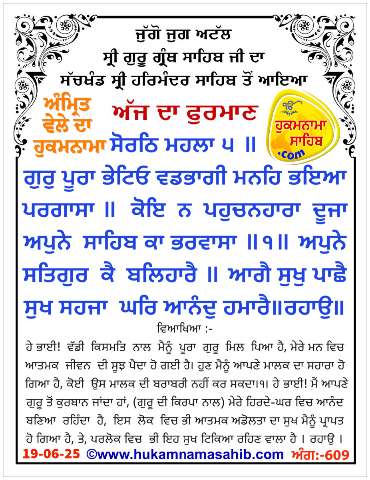 AMRIT VELE DA HUKAMNAMA SRI DARBAR SAHIB SRI AMRITSAR, ANG 609, 19-06-25