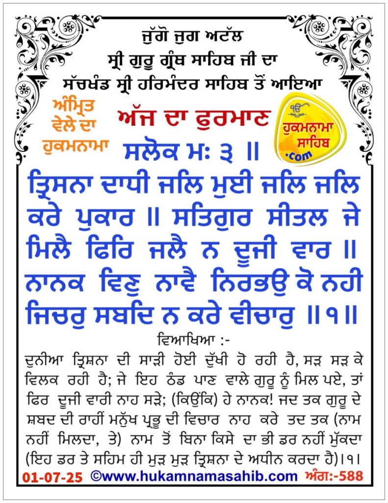 Amrit vele da Hukamnama Sri Darbar Sahib, Amritsar, Ang 588, 01-07-2025