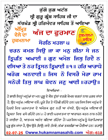 AMRIT VELE DA HUKAMNAMA SRI DARBAR SAHIB, AMRITSAR, ANG 612, 02-07-25