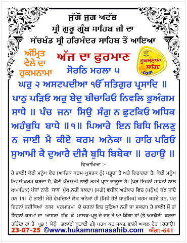 AMRIT VELE DA HUKAMNAMA SRI DARBAR SAHIB AMRITSAR, ANG 641, 23-07-2025