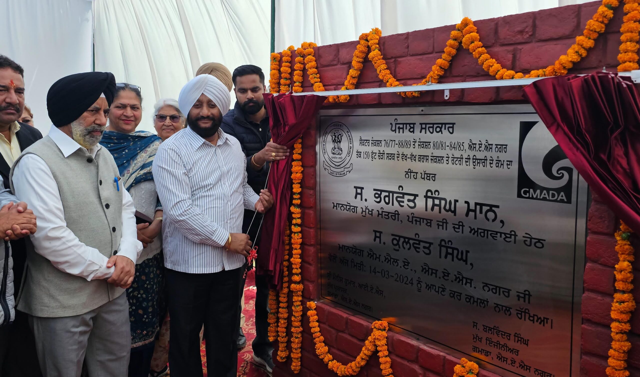 ਸਾਹਿਬਜ਼ਾਦਾ ਅਜੀਤ ਸਿੰਘ ਨਗਰ, 14 ਮਾਰਚ (ਪੰਜਾਬੀ ਦੁਨੀਆ ਬਿਊਰੋ) : ਪੰਜਾਬ ਦੀ ਭਗਵੰਤ ਸਿੰਘ ਮਾਨ ਸਰਕਾਰ ਵੱਲੋਂ ਅੱਜ ਮੋਹਾਲੀ ਵਾਸੀਆਂ ਨੂੰ ਵੱਡਾ ਤੋਹਫ਼ਾ ਦਿੰਦਿਆਂ ਵਿਧਾਇਕ ਕੁਲਵੰਤ ਸਿੰਘ ਵੱਲੋਂ ਮੋਹਾਲੀ ਵਿਖੇ ਕਰੀਬ 65 ਕਰੋੜ ਰੁਪਏ ਦੇ ਪ੍ਰੋਜੈਕਟਾਂ ਦੀ ਸ਼ੁਰੂਆਤ ਦੇ ਨੀਹ ਪੱਥਰ ਰੱਖੇ ਗਏ।