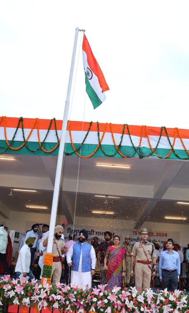ਅਖੀਰ ਵਿੱਚ ਉਨ੍ਹਾਂ ਭਾਰਤ ਦੇ ਸਾਰੇ ਮਹਾਨ ਸ਼ਹੀਦਾਂ ਨੂੰ ਪ੍ਰਣਾਮ ਕਰਦੇ ਹੋਏ ਦੁਹਰਾਇਆ ਕਿ ਮੁੱਖ ਮੰਤਰੀ ਸ. ਭਗਵੰਤ ਮਾਨ ਦੀ ਅਗਵਾਈ ਵਾਲੀ ਸੂਬਾ ਸਰਕਾਰ ਸੂਬੇ ਨੂੰ ਮੁੜ ‘ਰੰਗਲਾ ਪੰਜਾਬ, ਹੱਸਦਾ ਖੇਡਦਾ ਤੇ ਖੁਸ਼ਹਾਲ ਪੰਜਾਬ’ ਬਣਾਉਣ ਲਈ ਤਤਪਰ ਹੈ ਅਤੇ ਇਸ ਦਿਸ਼ਾ ਵਿੱਚ ਲਗਾਤਾਰ ਉਪਰਾਲੇ ਕੀਤੇ ਜਾ ਰਹੇ ਹਨ। ਇਸ ਤੋਂ ਪਹਿਲਾਂ ਸਿਖਿਆ ਮੰਤਰੀ ਹਰਜੋਤ ਸਿੰਘ ਬੈਂਸ ਨੇ ਪਰੇਡ ਦਾ ਨਿਰੀਖਣ ਵੀ ਕੀਤਾ ਜਿਸ ਵਿੱਚ ਪੰਜਾਬ ਪੁਲਿਸ ਦੀਆਂ ਪੁਰਸ਼ ਤੇ ਮਹਿਲਾ ਟੁਕੜੀਆਂ ਤਿੰਨ ਇਲਾਵਾ ਕਾਲਜ/ਸਕੂਲਾਂ ਦੇ ਐਨ ਸੀ ਸੀ ਕੈਡੇਟ ਵੀ ਸ਼ਾਮਿਲ ਸਨ। ਪਰੇਡ ਨਿਰੀਖਣ ਮੌਕੇ ਡਿਪਟੀ ਕਮਿਸ਼ਨਰ ਸ਼੍ਰੀਮਤੀ ਆਸ਼ਿਕਾ ਜੈਨ, ਐਸ ਐਸ ਪੀ ਦੀਪਕ ਪਾਰਿਕ ਅਤੇ ਪਰੇਡ ਕਮਾਂਡਰ ਡੀ ਐਸ ਪੀ ਜਤਿੰਦਰ ਚੌਹਾਨ ਵੀ ਉਨ੍ਹਾਂ ਨਾਲ ਜਿਪਸੀ ਤੇ ਸਵਾਰ ਸਨ।