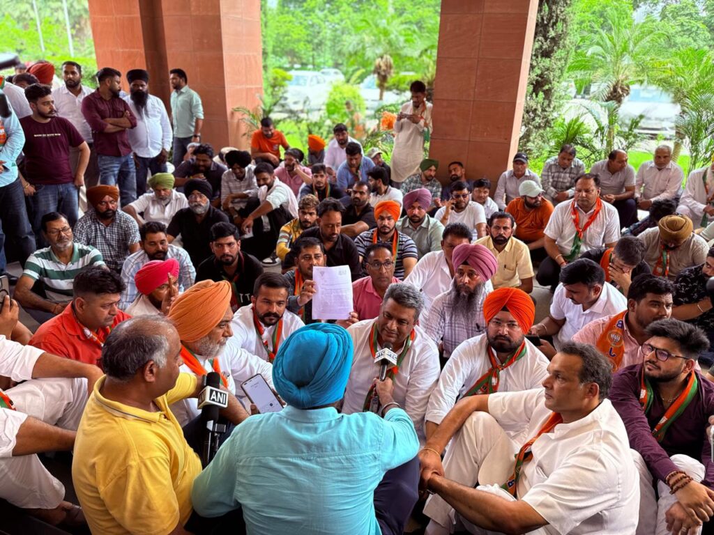 ਭਾਜਪਾ ਜਿਲਾ ਮੋਹਾਲੀ ਦੀ ਟੀਮ ਵੱਲੋਂ ਅੱਜ ਭਗਵੰਤ ਮਾਨ ਸਰਕਾਰ ਖਿਲਾਫ ਰੋਸ ਪ੍ਰਦਰਸ਼ਨ ਕੀਤਾ ਤੇ ਡਿਪਟੀ ਕਮਿਸ਼ਨਰ ਦੇ ਨੁਮਾਇੰਦੇ ਨੂੰ ਭਾਜਪਾ ਜਿਲਾ ਪ੍ਰਧਾਨ ਸੰਜੀਵ ਵਸ਼ਿਸ਼ਟ ਦੀ ਅਗਵਾਈ ਵਿੱਚ ਮੈਮੋਰੰਡਮ ਸੌਂਪਿਆ ਗਿਆ।